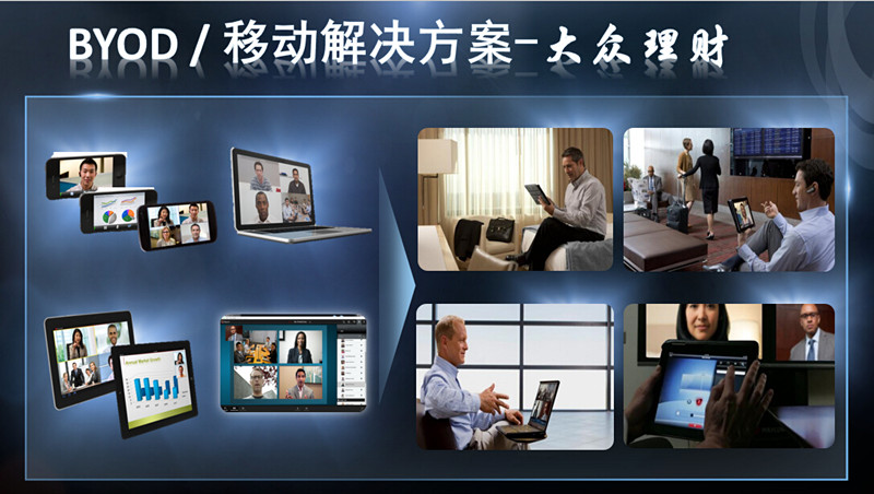任何时间、任何地点都可以通过移动设备进行掌上理财,现在不只是互联网公司,连传统金融机构也能实现这一点啦!Polycom为金融业量身打造的移动解决方案能提供便捷性和安全性,客户在机场、在出差路上想查看股市行情、咨询理财意见,都能随时随地获得满足。金融理财打破时间和距离限制,Polycom做得到!