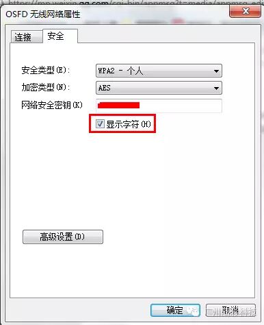 3、点击“显示字符”项,嗯,这个无线网络的密码就明文显示了!