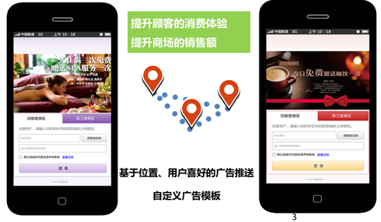 第4发子弹:无线运营平台的WiFi可以提供的短信认证、微信认证、二维码认证等多种认证方式的价值,不但在于满足合规要求;同时,O2O无线运营平台可以将采集到的用户手机号码/微信号,和CRM(客户关系管理)系统进行关联,通过将用户信息、顾客等级、消费记录、个人喜好、上网习惯等信息进行大数据分析后,可以根据顾客级别、潜在消费商品、所在的楼层位置等,推送出针对性的广告页面。这既提升了客户购物体验,还可以增加商场的销售额。广告形式还是模板化的,让不懂IT的业务部门也能独立操作。