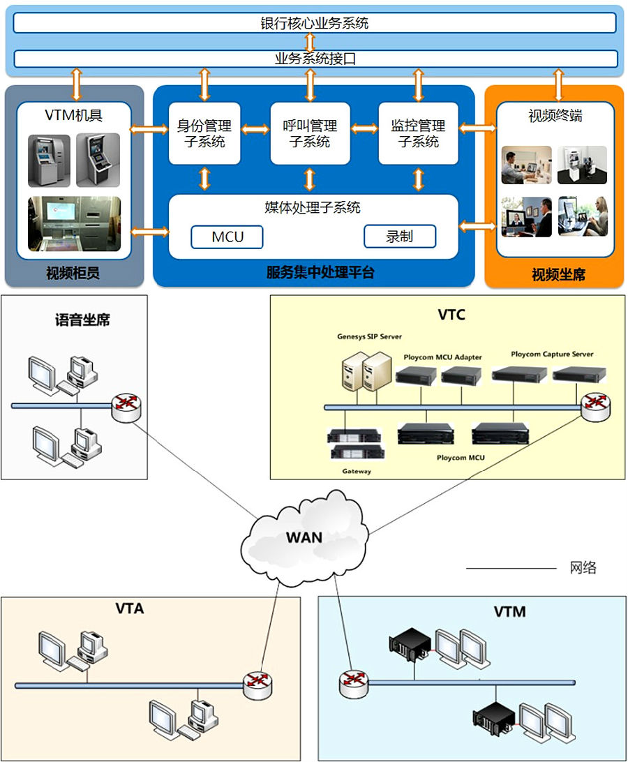 VTM解决方案,即Virtual Teller Machine,融汇了当今最先进的高清视频通讯、呼叫联络中心、人机交互协作、远程智能控制、生物识别和电子化采集等高新科技,以全新的智能服务,替代或分流传统的网点柜面服务。24小时全天候的银行服务,随时为客户stand by!