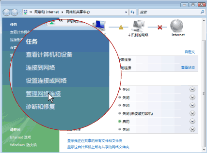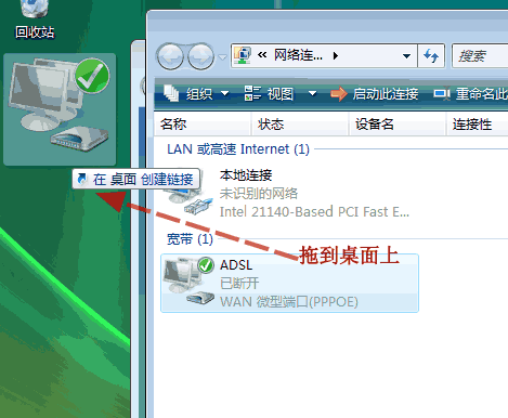 7 连接建立好了,你可以在桌面上放个快捷方式方便你拨号。在网络和共享中心里点左边的管理网络连接。